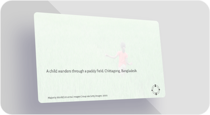 A child wanders through a paddy 昀椀eld. Chittagong, Bangladesh. Majority World/Universal Images Group via Getty Images. 2000.