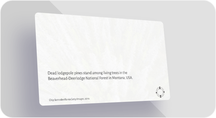 Dead lodgepole pines stand among living trees in the Beaverhead-Deerlodge National Forest in Montana, USA. Chip Somodevilla via Getty Images. 2019.