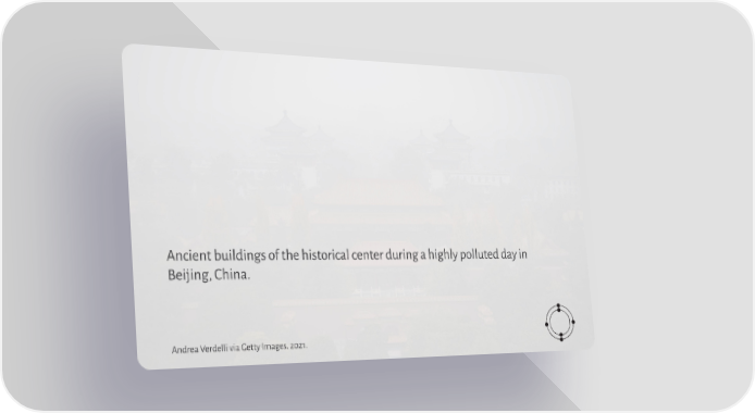 Ancient buildings of the historical center during a highly polluted day in Beijing, China. Andrea Verdelli via Getty Images. 2021.