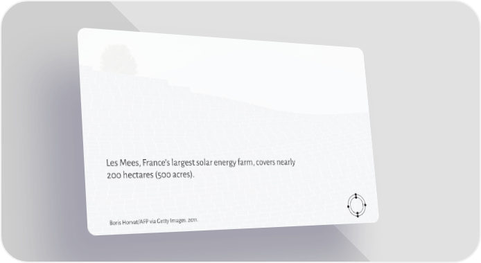 Les Mees, France’s largest solar energy farm, covers nearly 200 hectares (500 acres). Boris Horvat/AFP via Getty Images. 2011.