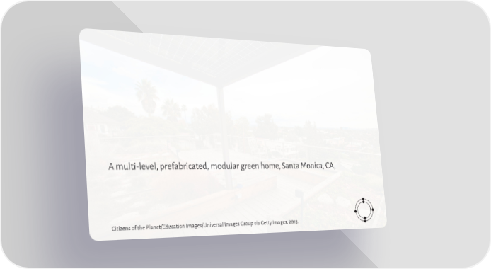 A multi-level, prefabricated, modular green home, Santa Monica, CA, Citizens of the Planet/Education Images/Universal Images Group via Getty Images. 2013.