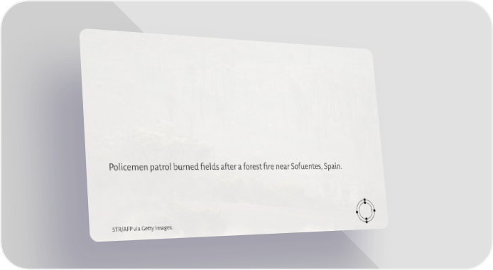 🌹 Climate Change In Photos Page 38 Page 40Policemen patrol burned 昀椀elds after a forest 昀椀re near Sofuentes, Spain. STR/AFP via Getty Images.