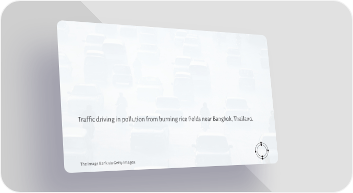 🌹 Climate Change In Photos Page 12 Page 14Traf昀椀c driving in pollution from burning rice 昀椀elds near Bangkok, Thailand. The Image Bank via Getty Images.