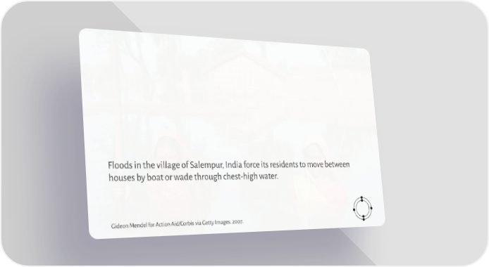 🌹 Climate Change In Photos Page 22 Page 24Floods in the village of Salempur, India force its residents to move between houses by boat or wade through chest-high water. Gideon Mendel for Action Aid/Corbis via Getty Images. 2007.