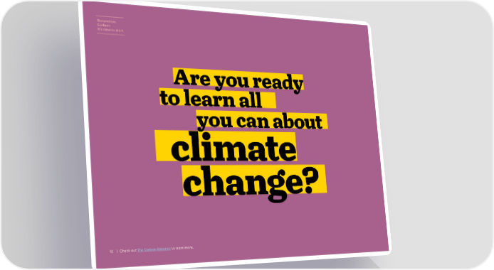 ♻️ Generation Carbon KidBook™ Page 9 Page 11Generation Carbon: It’s time to start. Are you ready to learn all you can about climate change? 10 | Check out The Carbon Almanac to learn more.