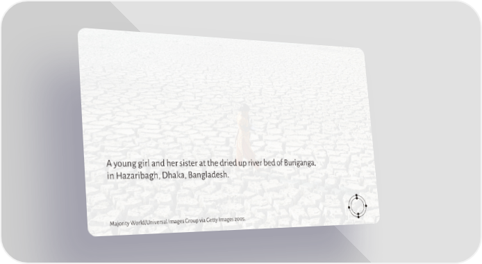 Planet in Peril Page 24 Page 26A young girl and her sister at the dried up river bed of Buriganga, in Hazaribagh, Dhaka, Bangladesh. Majority World/Universal Images Group via Getty Images 2005.