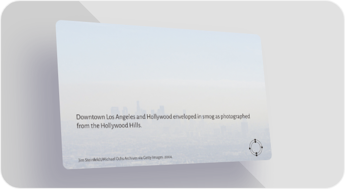 Downtown Los Angeles and Hollywood enveloped in smog as photographed from the Hollywood Hills. Jim Steinfeldt/Michael Ochs Archives via Getty Images. 2004.