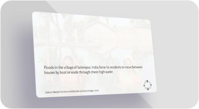 Planet in Peril Page 22 Page 24Floods in the village of Salempur, India force its residents to move between houses by boat or wade through chest-high water. Gideon Mendel for Action Aid/Corbis via Getty Images. 2007.