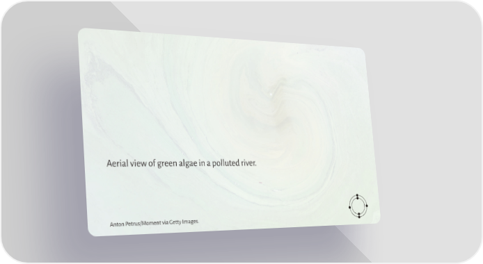 Aerial view of green algae in a polluted river. Anton Petrus/Moment via Getty Images. Planet in Peril Page 50 Page 52