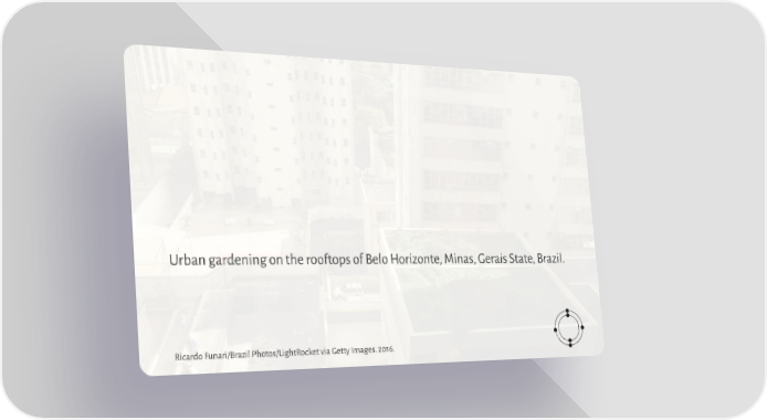 Seeds of Hope Page 30 Page 32Urban gardening on the rooftops of Belo Horizonte, Minas, Gerais State, Brazil. Ricardo Funari/Brazil Photos/LightRocket via Getty Images. 2016.