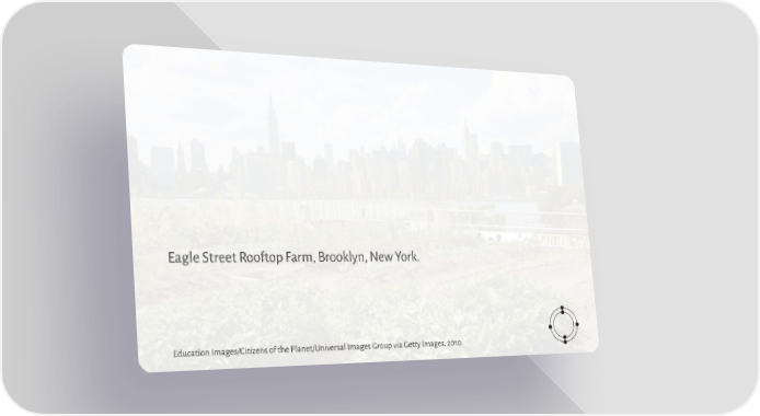 Eagle Street Rooftop Farm, Brooklyn, New York. Education Images/Citizens of the Planet/Universal Images Group via Getty Images. 2010.